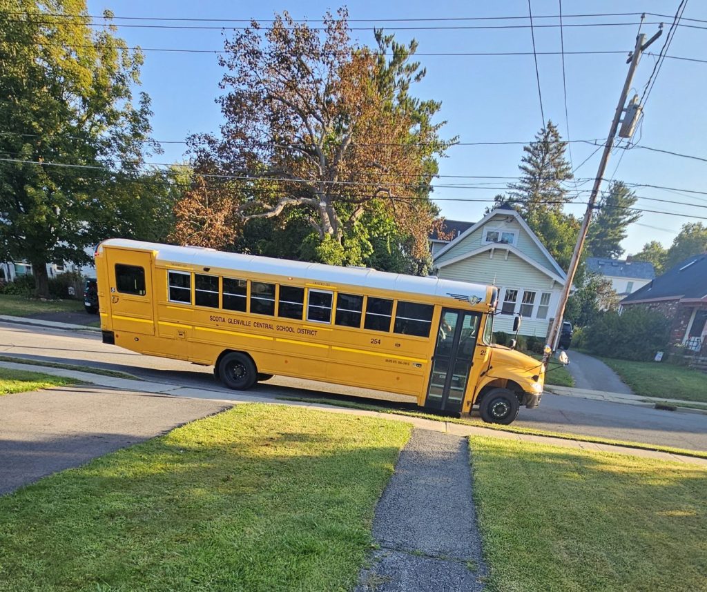 This year brought a huge step forward in Logan’s independence — his very first time riding a regular full-size school bus. Logan has ridden a bus for the past year, but always the smaller, special-needs bus with extra support and structure. This year was different. This was a big moment. Literally.