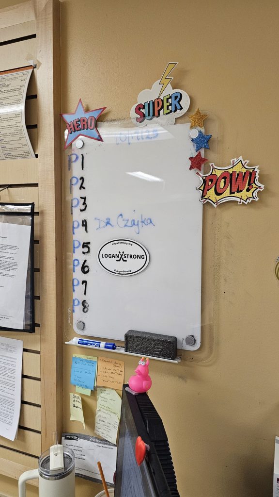 And in a moment that felt both emotional and comforting, the hospital placed his Logan Strong magnet on the surgery board — the same one we’ve used over the years. The nurses remembered him. They remembered his story. They remembered him.