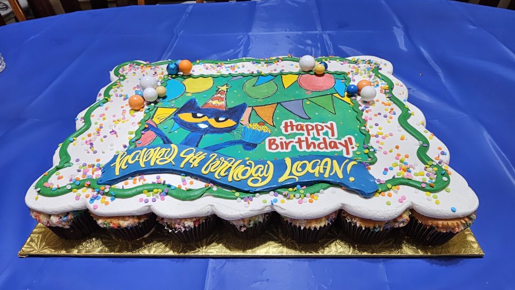 We had a small Pete the Cat–themed party on Friday night, November 21, and it truly ended up being exactly what Logan needed. It was just close family and a few friends — nothing big or overwhelming — but full of bright colors, cupcakes, and plenty of balloons (Logan’s absolute favorite part of any celebration).