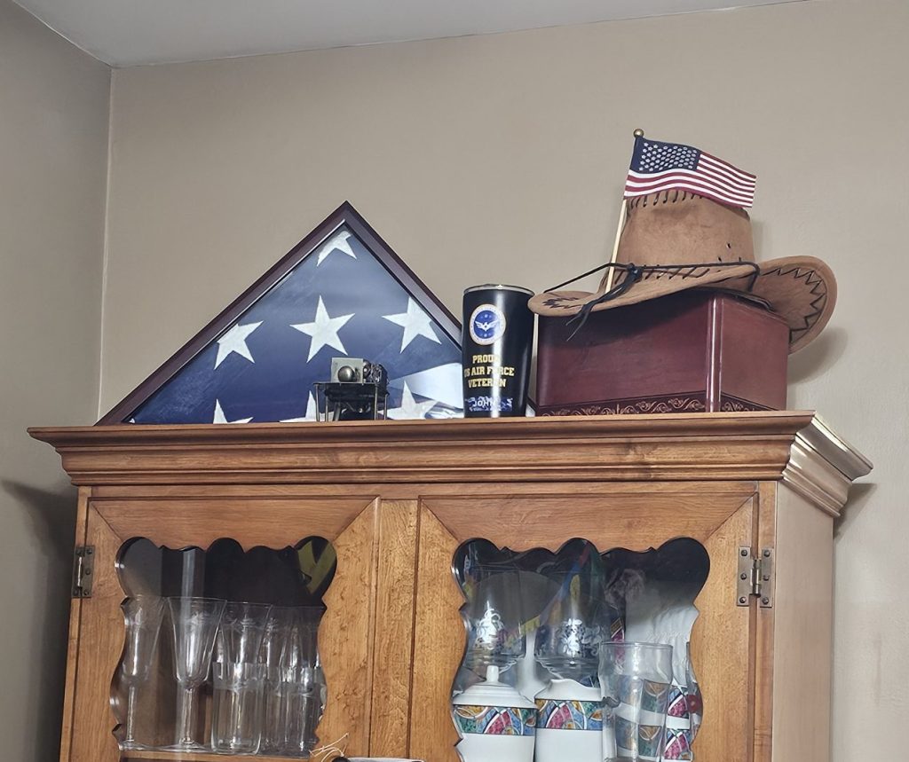 We keep Opa’s ashes and his military flag displayed proudly in our dining room, a daily reminder of who he was and the legacy he left behind. Every once in a while, Logan will stop, point up, and say, “Opa.” Just that one word — soft, sure, and full of recognition.